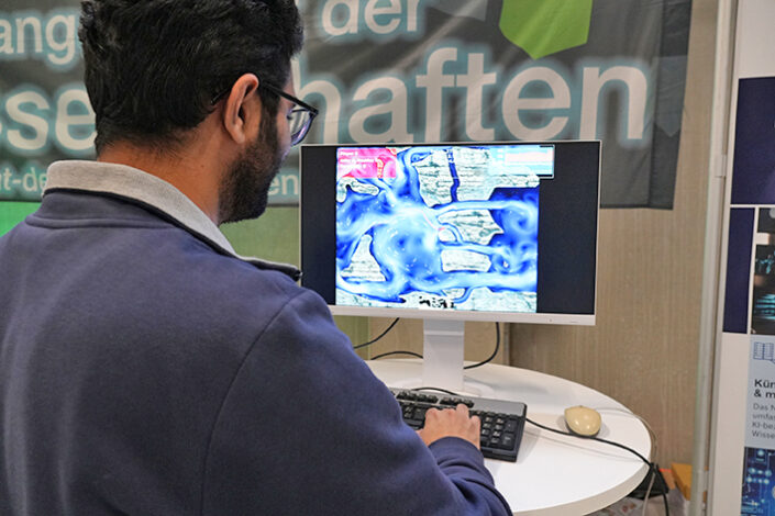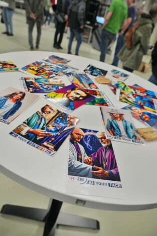 Among these highlights, one attraction stood out: the AI image generator, developed and provided by the Zuse Institute Berlin (ZIB) and the NHR Alliance. This creative station invited visitors to experience the playful side of AI—by turning themselves into superheroes. All evening, young and old waited for their chance to take their turn.