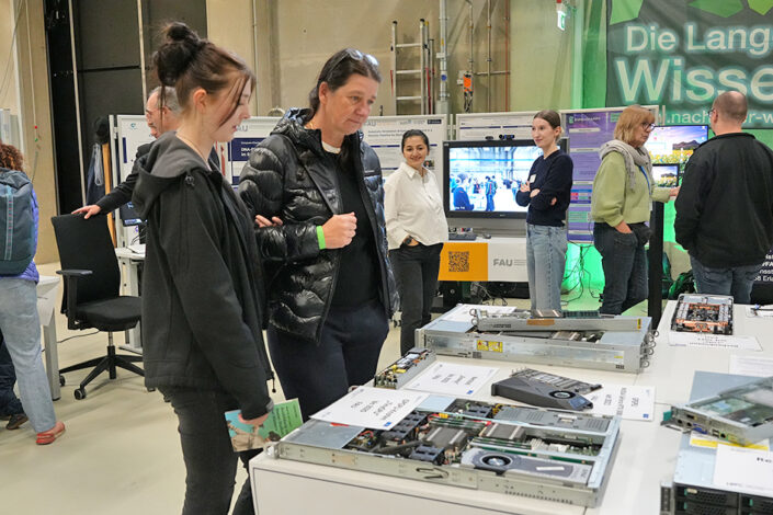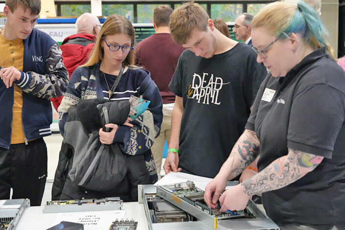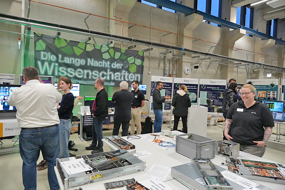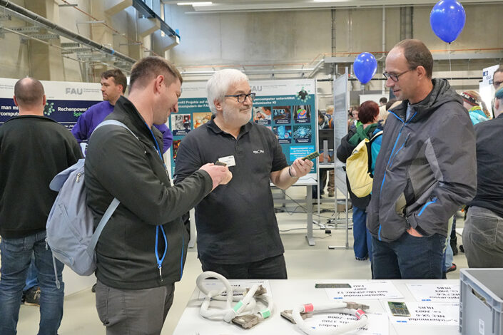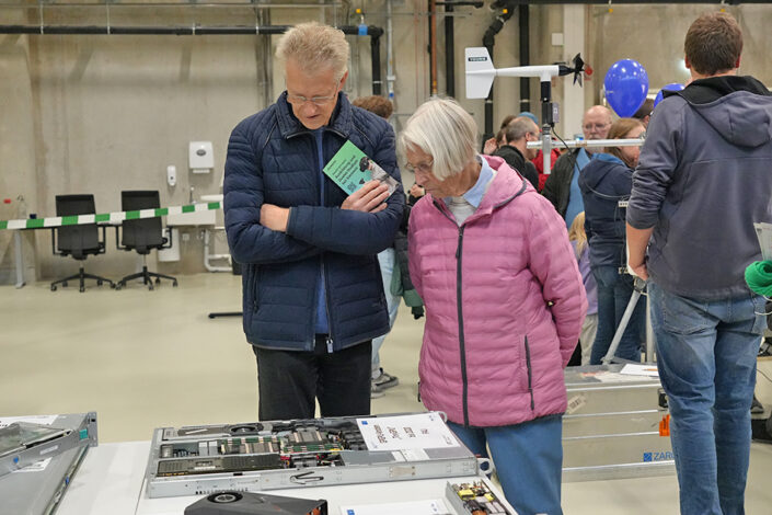 Visitors were encouraged to get up close with the hardware itself: Compute nodes, network cables, and many other components were on display, allowing to see what makes a supercomputer tick. Scientists explained how data flows, how cooling systems work, and how thousands of processors collaborate to solve complex problems.