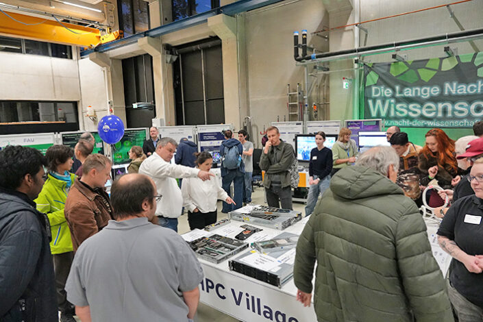 For the first time, the “HPC Village—Supercomputers at Work” took place at the Erlangen Centre for Astroparticle Physics (ECAP). Organized by NHR@FAU in collaboration with partner institutions, the HPC Village offered hands-on insights into the world of high-performance computing (HPC) and its diverse applications—from artificial intelligence and machine learning to atomistic simulations and program optimization.