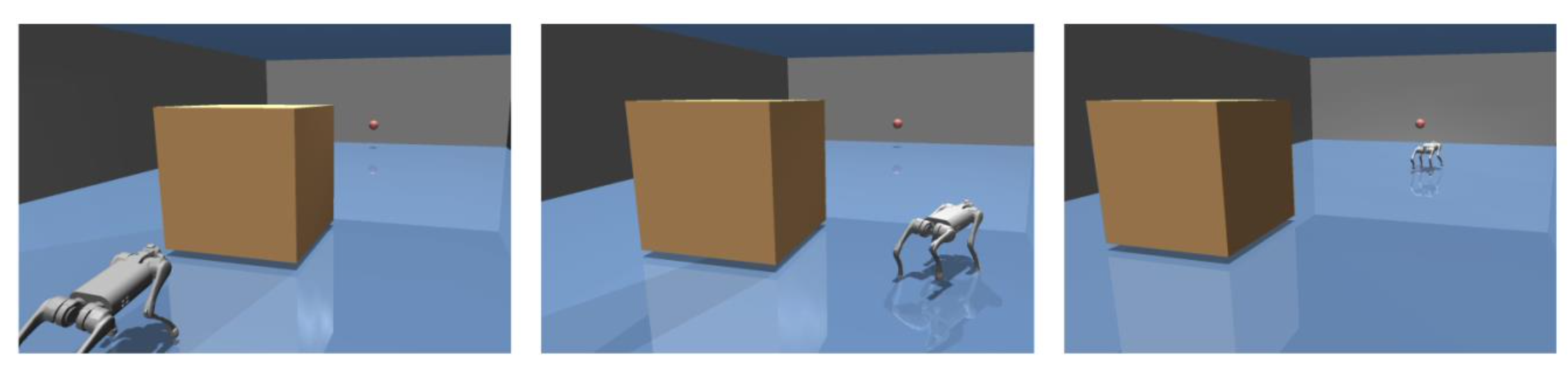 We demonstrate the critical importance of our methodological advances in learning locomotion skills in legged robots. In this application, we need to move robustly and safely at different speeds, avoiding obstacles and adapting to different terrains. We demonstrate the importance of our algorithmic solutions in a realistic problem where multiple skills are required, such as navigating to a destination and avoiding obstacles along the way.